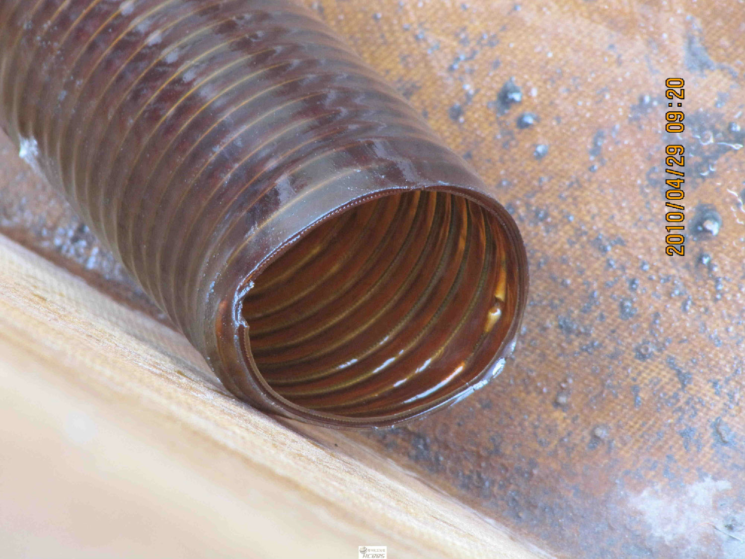 從上圖可以看出,管子已經(jīng)被液體腐蝕造成了很大的損壞,首先客戶在選擇這款產(chǎn)品的時(shí)候應(yīng)該用更厚一些的產(chǎn)品??梢哉覍I(yè)的生產(chǎn)廠家購買無摻加各種助劑的優(yōu)質(zhì)PVC鋼絲管,這樣優(yōu)質(zhì)的管材會達(dá)到最高的壽命。當(dāng)然,本身這個(gè)濃度的液體對PVC鋼絲管的腐蝕性就很強(qiáng),所以保持在6個(gè)月-1年來說,算是產(chǎn)品的極限壽命了。甚至一些質(zhì)量差的管子還達(dá)不到3-6個(gè)月的壽命。